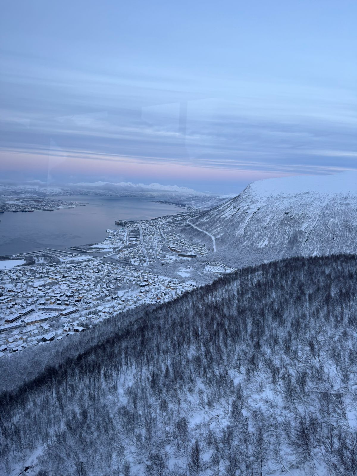 Por isso, partimos de Londres e fomos direto para Tromsø em novembro. Tromsø fica acima do Círculo Polar Ártico — e isso muda tudo: o clima, a luz do dia, a vibe da cidade, as pessoas e até a forma como você caminha na rua.